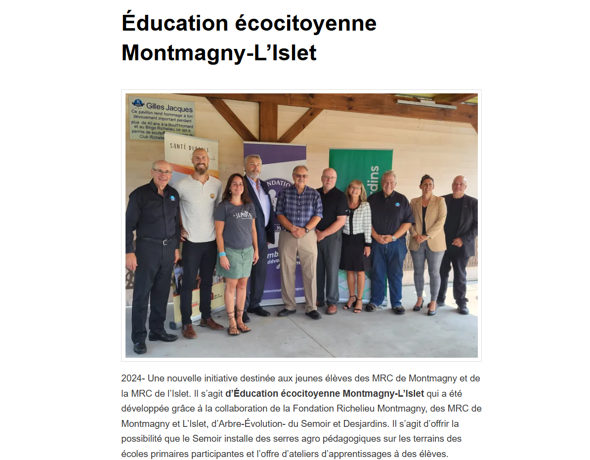 Un programme écoéducatif destiné aux milieux scolaires de Montmagny-L’Islet!